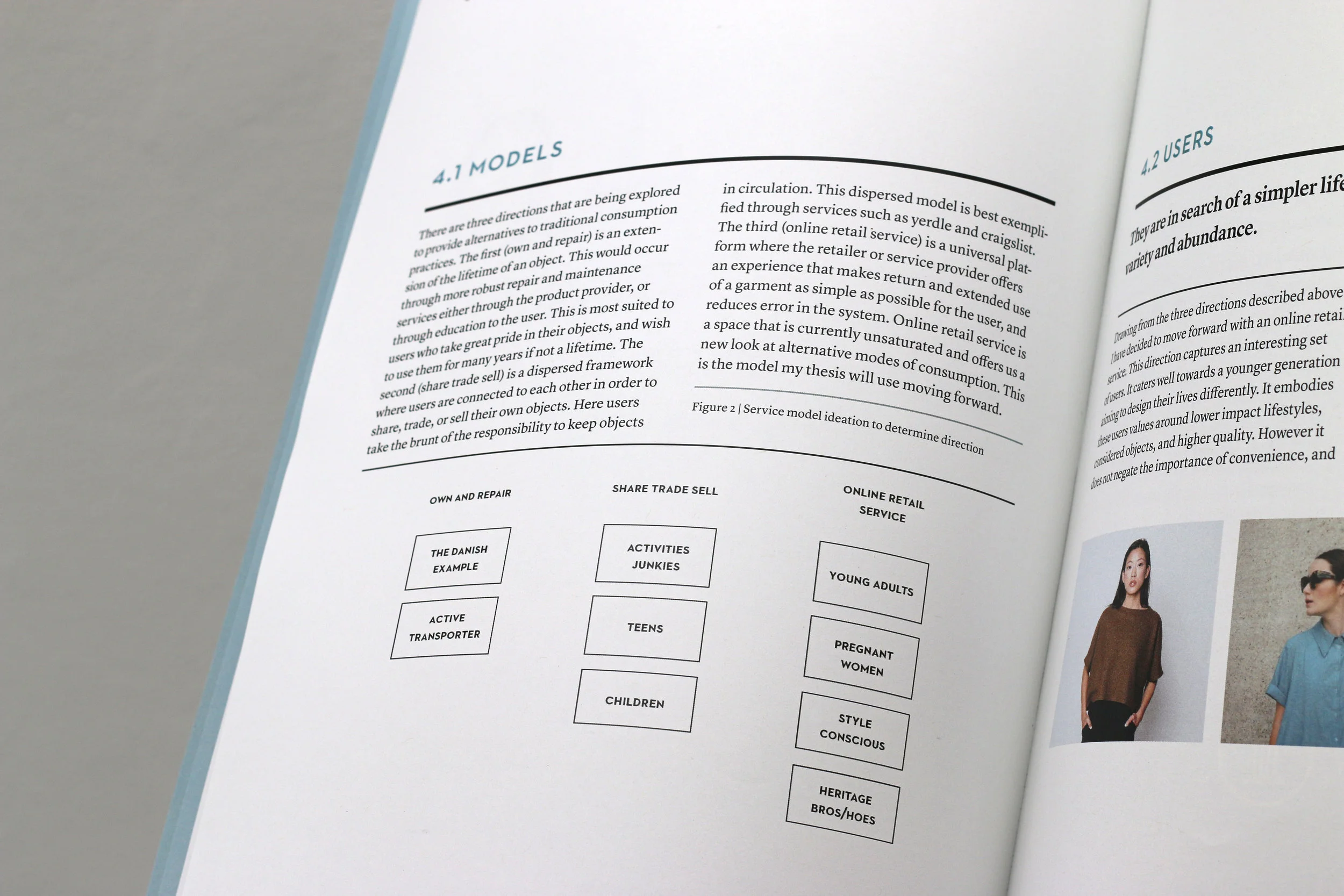 Third, a fashion industry that is responding quite slowly to the above changes and issues. What response they are undergoing is often to remedy current situations, however these interventions are doing little to envision what the future of garment use, and fashion really could be. How could we reduce the impact of the clothing industry, while providing unique and exciting experiences that will help users transition to less consumptive habits. This is where my thesis is positioned.
