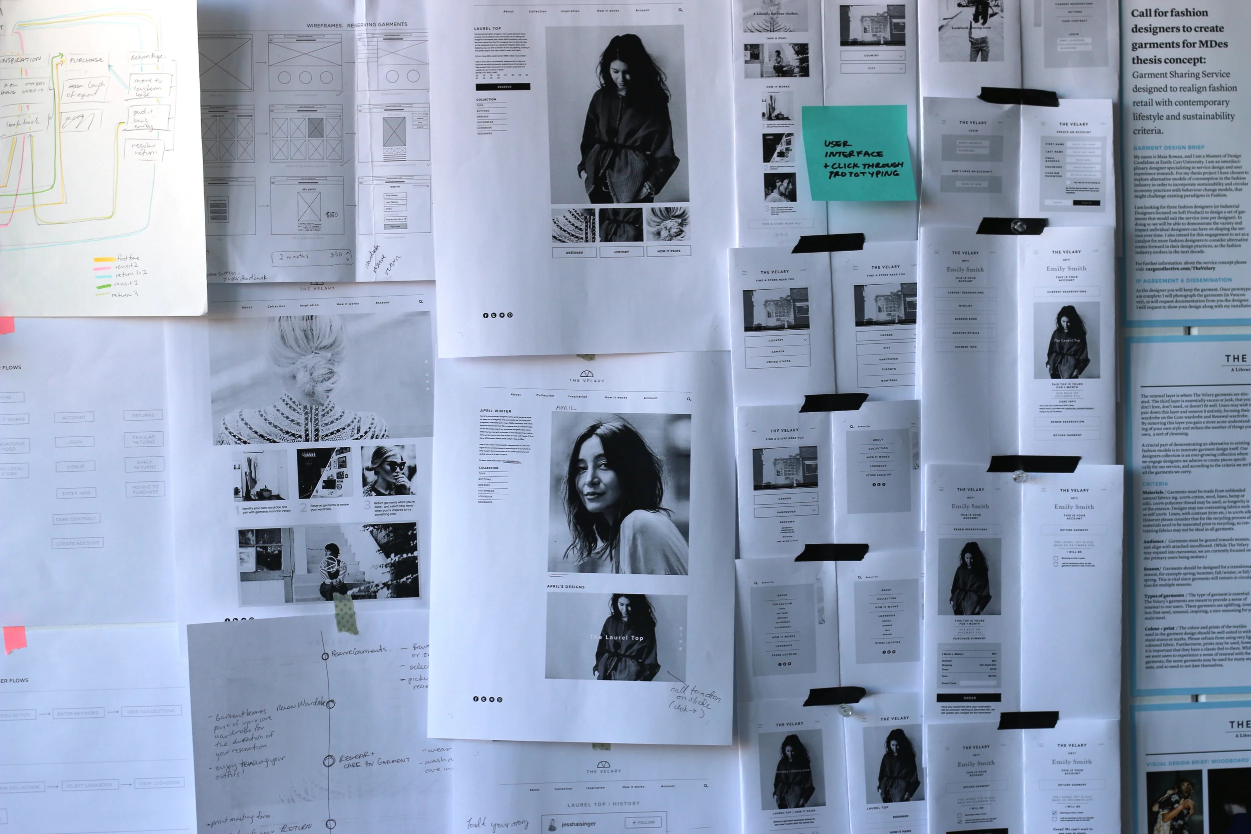 In order to gain insight into the user experience design of the website, in terms of both functionality and enjoyability, I conducted user testing with seven participants. Participants included probe respondents who had previous knowledge of the thesis research intentions, and new student participants who were less involved in the study. I was looking to determine the effectiveness of learnability and memorability, functionality and errors, and satisfaction. I conducted preliminary user testing through observing how users interacted with my first clickable prototype, and then transitioned to task based testing with a second more refined prototype. I asked participants to complete four tasks including to find a garment, check out a garment, return a garment, and login. I also asked participants to discover what the service does through website copy and summarize it in their own words.